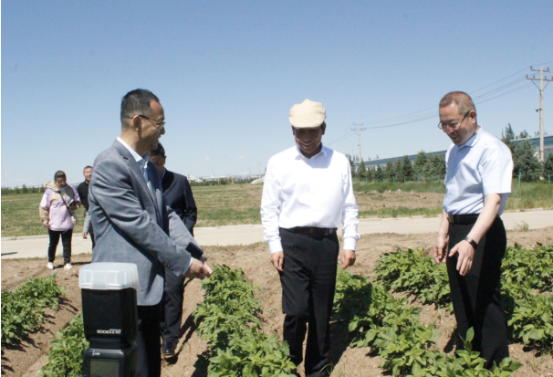 在試驗田前,冀福善向段志強一行介紹,公司為科學種植,合理輪茬,從2015年開始進入燕麥產業(yè),實施“馬鈴薯+燕麥”雙輪驅動發(fā)展戰(zhàn)略,在察右中旗成立子公司——內蒙古陰山優(yōu)麥食品有限公司。目前,陰山優(yōu)麥已完成投資2.4億元,年產2萬噸燕麥香米、2萬噸燕麥片、2000萬支燕麥杯、6000噸燕麥粉(莜面)和2萬噸藜麥米加工生產線已建成并投入使用,陰山優(yōu)麥是“自治區(qū)農業(yè)產業(yè)化重點龍頭企業(yè)”、“自治區(qū)扶貧龍頭企業(yè)”。同時,公司依托自身在加工薯種植管理技術、產品質量、倉儲能力等方面的優(yōu)勢,于2019年初在察右中旗成立子公司——內蒙古蒙薯食品科技有限公司,計劃投資1.5億元,建設“年產8000噸低溫油炸薯條及2000噸果蔬脆片加工項目”,全力打造烏蘭察布市地標性產品,創(chuàng)建全國大的低溫油炸薯條、果蔬脆片深加工企業(yè),已于今年投產。