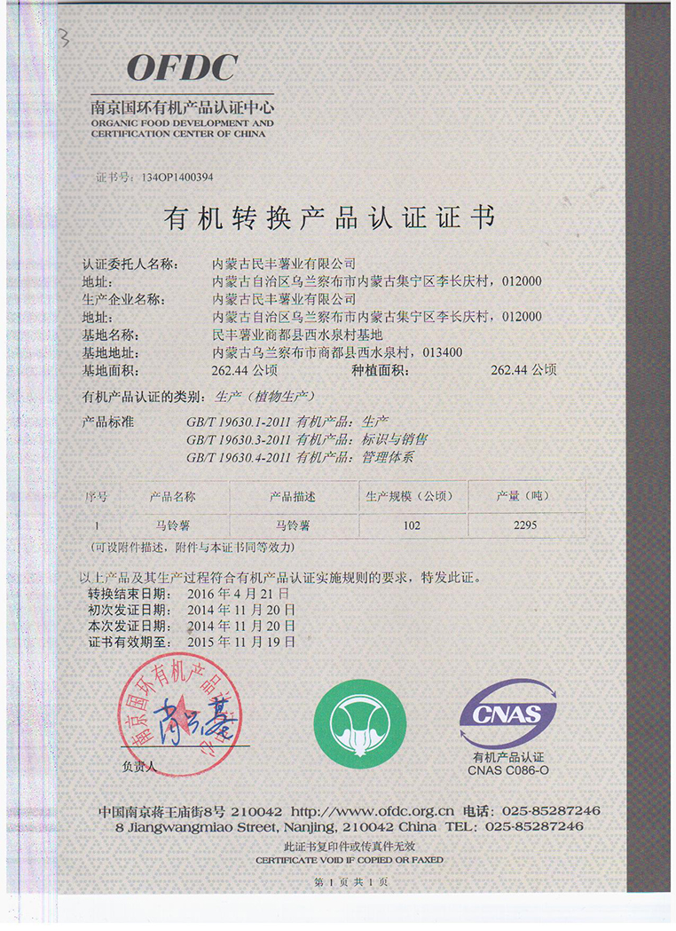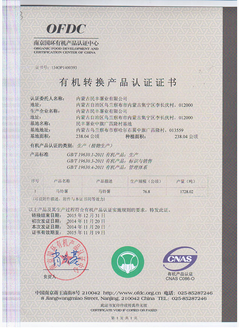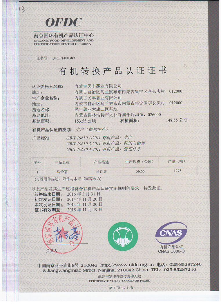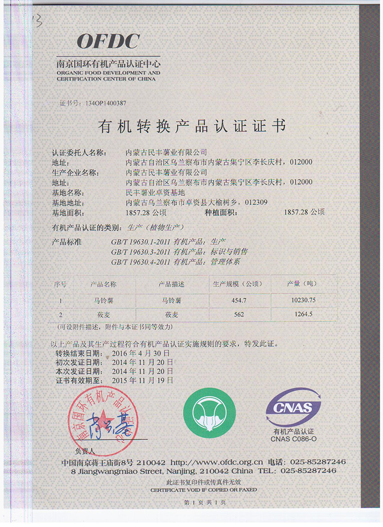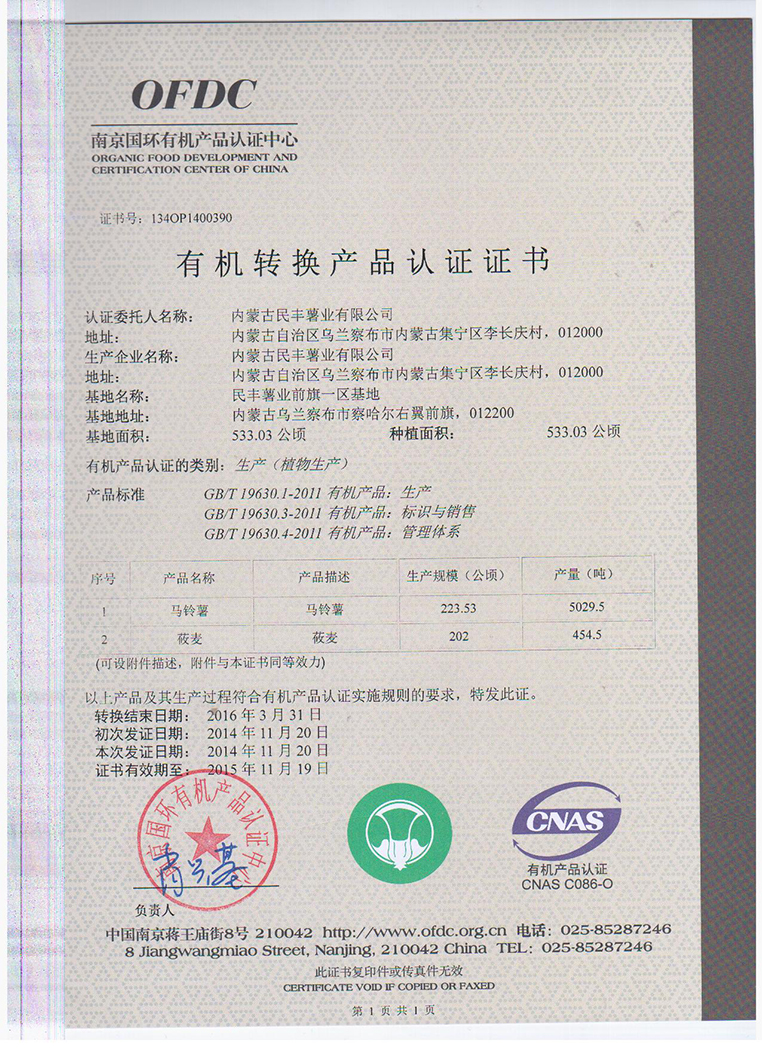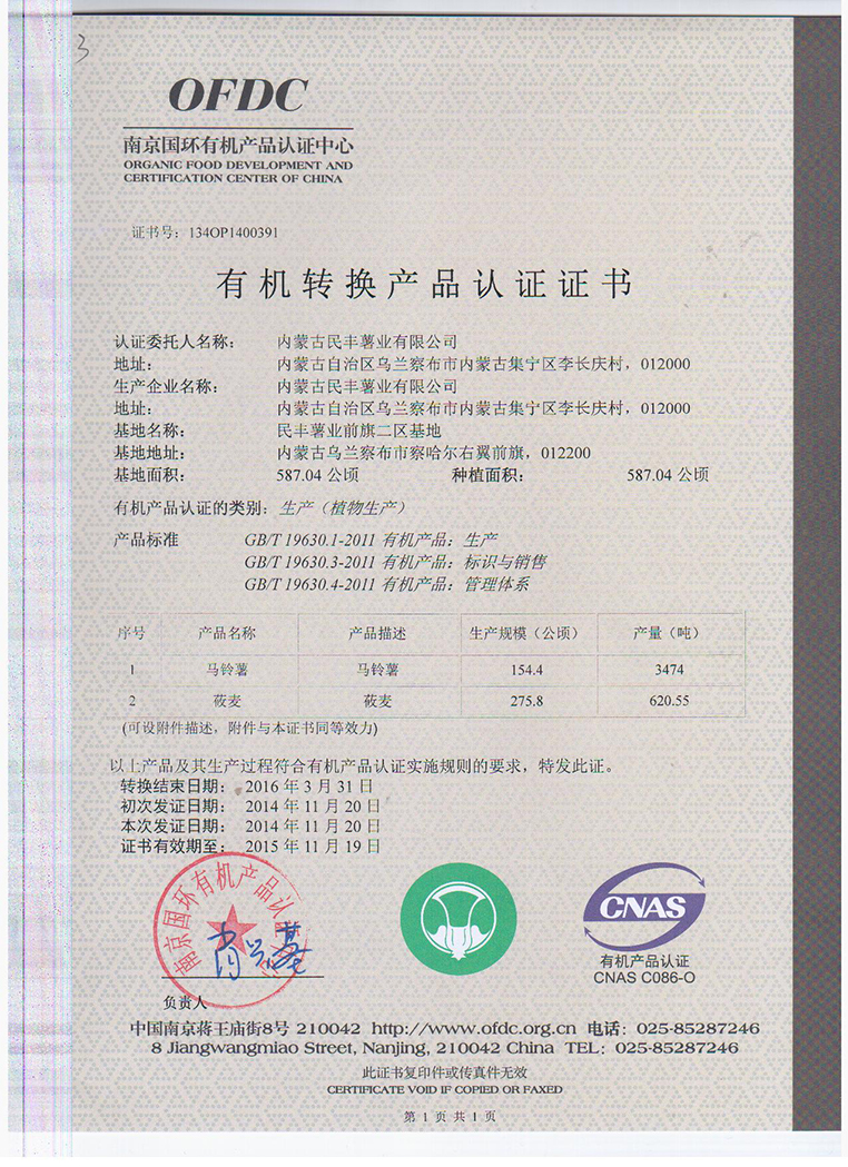 內(nèi)蒙古民豐種業(yè)公司已在今年完成有機(jī)認(rèn)證工作,此次工作在經(jīng)歷了兩年的認(rèn)證... [詳細(xì)信息]